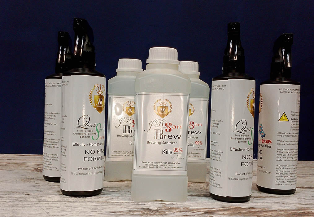 JR Sanbrew Brewing Sanitizer kills microbes and surface bacteria and make equipment safe to use with beer. Arguably sanitization is the most important component of the brewing process. Without sanitization, beer would be full of other organisms (wild yeast) that turn beer sour and undrinkable. JR Sanbrew Brewing Sanitizer is formulated by our Johnny Rich Corporation and we have been using this formula ourselves for our own brewing for over two decade.